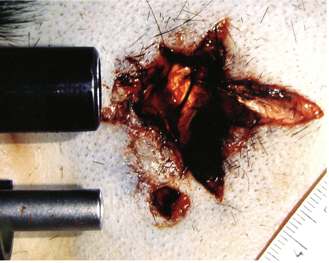 Studio della lesività da agente balistico: foro d’ingresso, foro d’uscita, tramite intracorporeo, effetti della cavità temporanea, effetti secondari dello sparo, ecc…