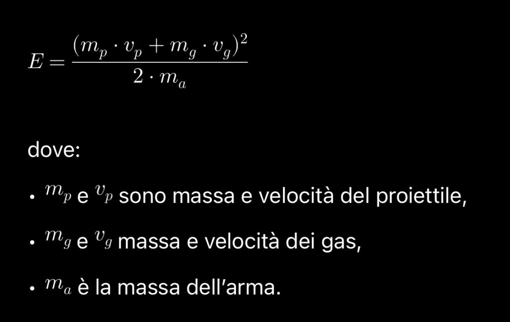 In formule, il rinculo “ideale” (non frenato) può essere espresso come: